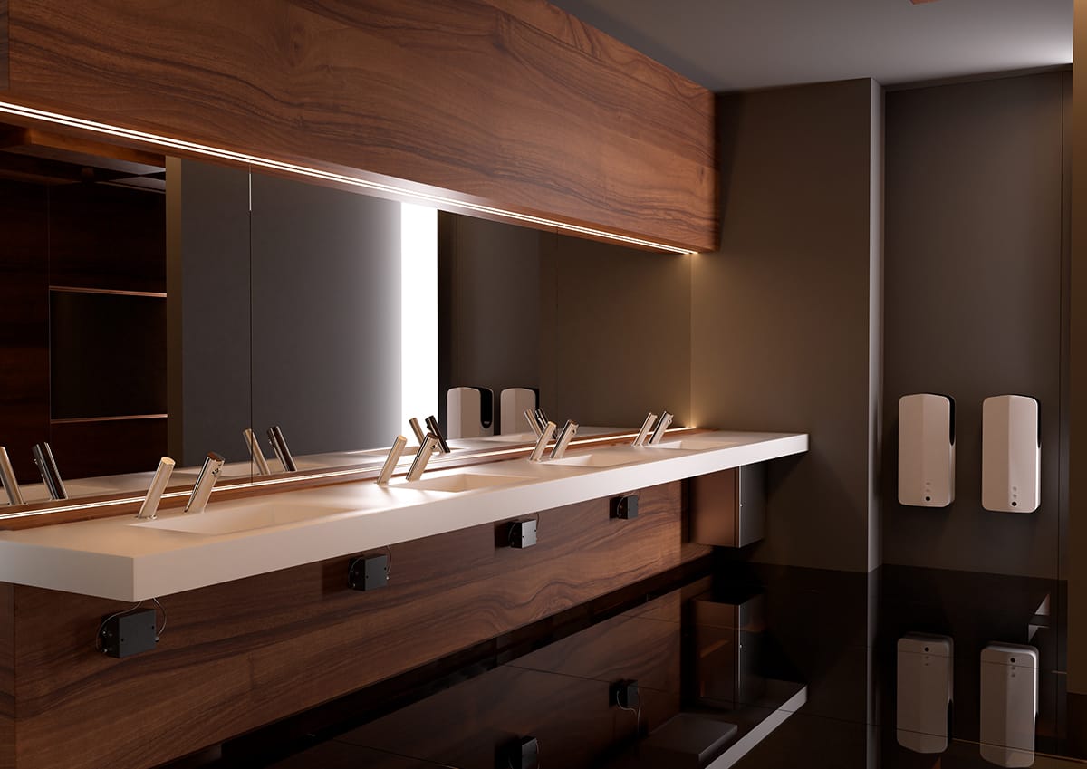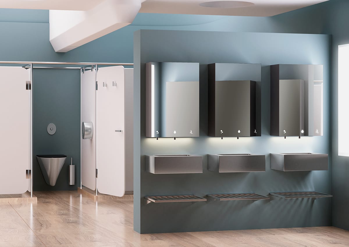 Mueble compacto MUMO FIX de NOFER con dispensador de jabón, dispensador de agua y secamanos FUGA EVO